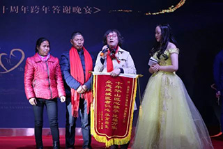而同样有着失独经历的华山妈妈刘宏英与丈夫鄢国辉也带着锦旗参加了此次华山十周年晚会,满怀感恩的她将锦旗亲手交给了她曾经的主治医生胡小萍院长手上,并表示自己非常感谢胡院长和华山医院,因为自己曾经遭受2次中年丧子之痛,几近崩溃。在华山医院的帮助下,她才能拥有一个孩子,与丈夫重燃起对生活的希望,如今有女万事足的他们,生活幸福美满,也祝愿华山十周年晚会圆满成功,未来越来越好!